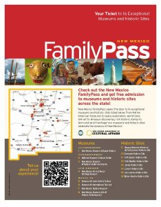 The New Mexico State Library, in partnership with local public libraries in New Mexico and the museums and historic sites of the Department of Cultural Affairs, offers the New Mexico FamilyPass to library card holders throughout the state.